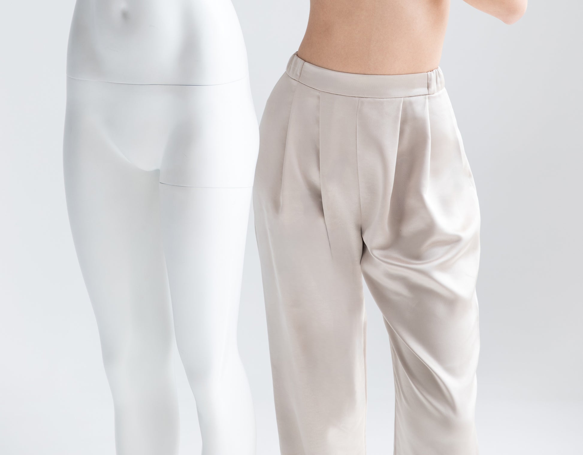 Elevate your every day elegance with these high-waisted satin trousers in a luminous gold hue . Featuring a relaxed tailored silhouette and subtle pleating , they move effortlessly between day and night .